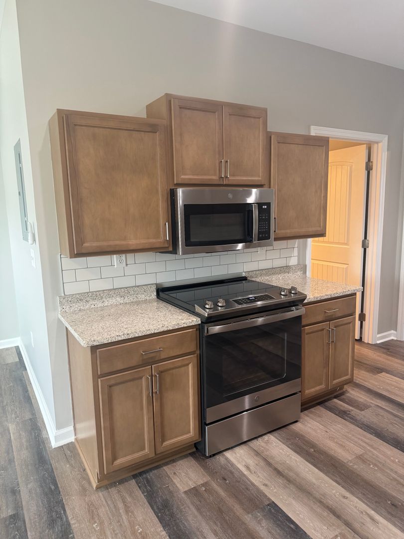 Upgraded Kitchen: Prepare to be inspired in your upgraded kitchen, complete with granite countertops that blend elegance and functionality seamlessly. Stainless steel appliances elevate your culinary experience, while the tile backsplash adds a touch of sophistication.